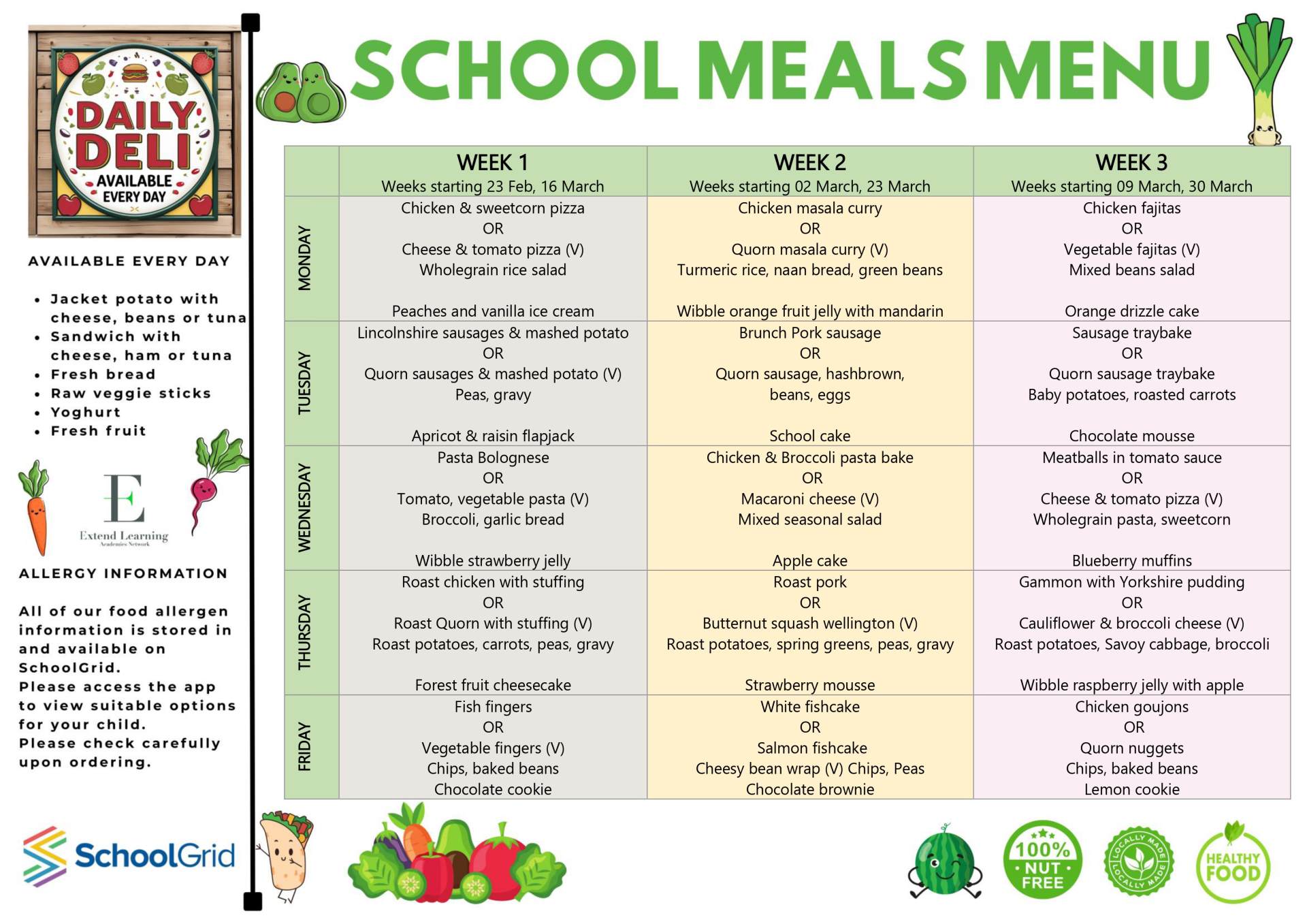 The ELAN catering team will do their best to cater to every child, but sadly, we cannot tailor meals for individual pupils. However, we have taken every opportunity to make sure that the menu is as inclusive as possible by ensuring there are choices available every day to suit a range of dietary needs. If your child does have a medical and diagnosed food allergy/intolerance, you must inform the school office immediately.